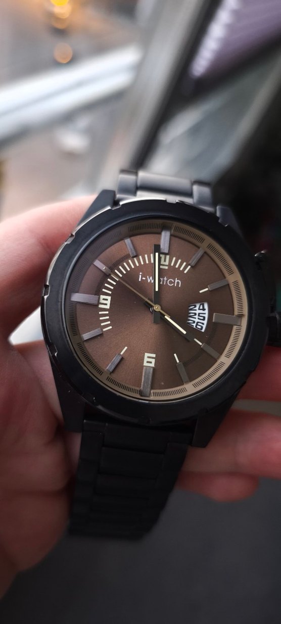 Koyu kahverengi kadranlı, biker tarzı erkek kol saati. Yuvarlak kadran, belirgin saat işaretleri ve tarih göstergesi bulunur. Siyah kayış ile tamamlanmıştır.
