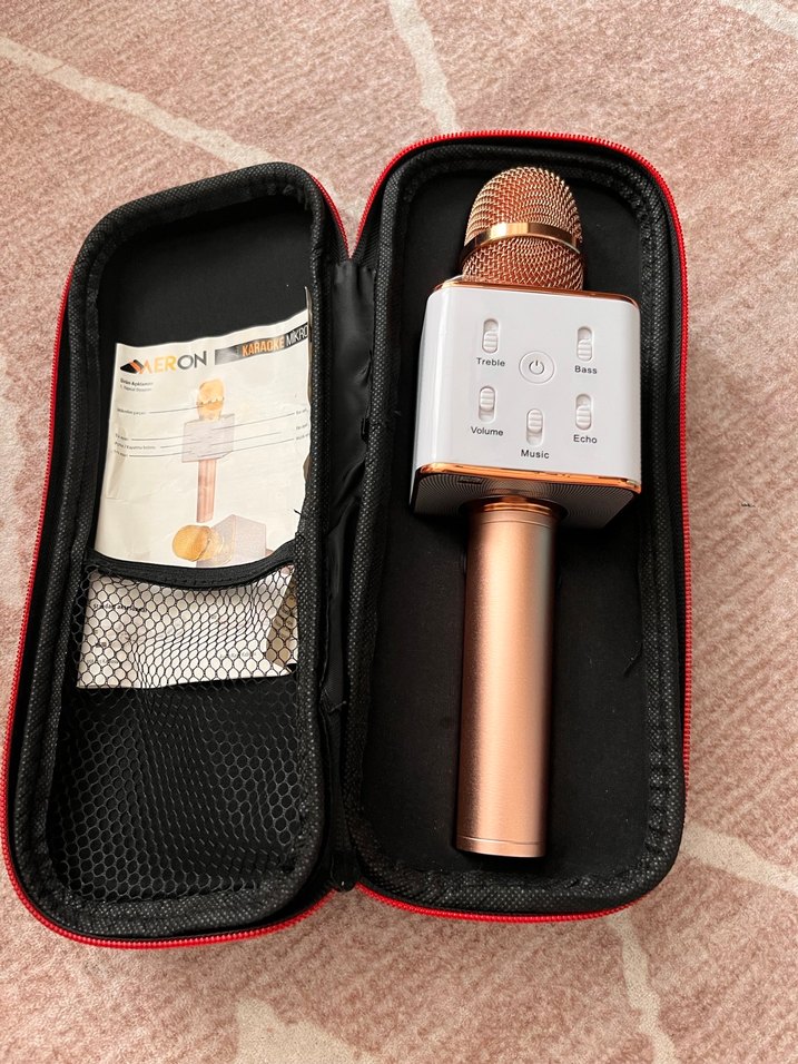 Ürün çantalı yep yeni blotoothlu Kahverengi kablosuz mikrofon, ses ayarları ve yankı kontrolü ile birlikte gelir. Taşıma çantası mevcuttur. Jelatini üstündedir