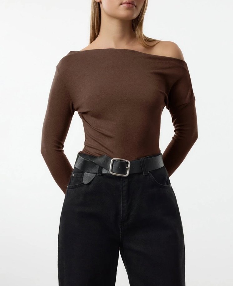 Acı Kahve Kahverengi Tek Omuz Açık Uzun Kol Sandy Kumaş Örme Bluz Siyah Beyaz Kahverengi S M L XL Bedenleri Mevcuttur #zara #hm #bershka #takip #beğeni