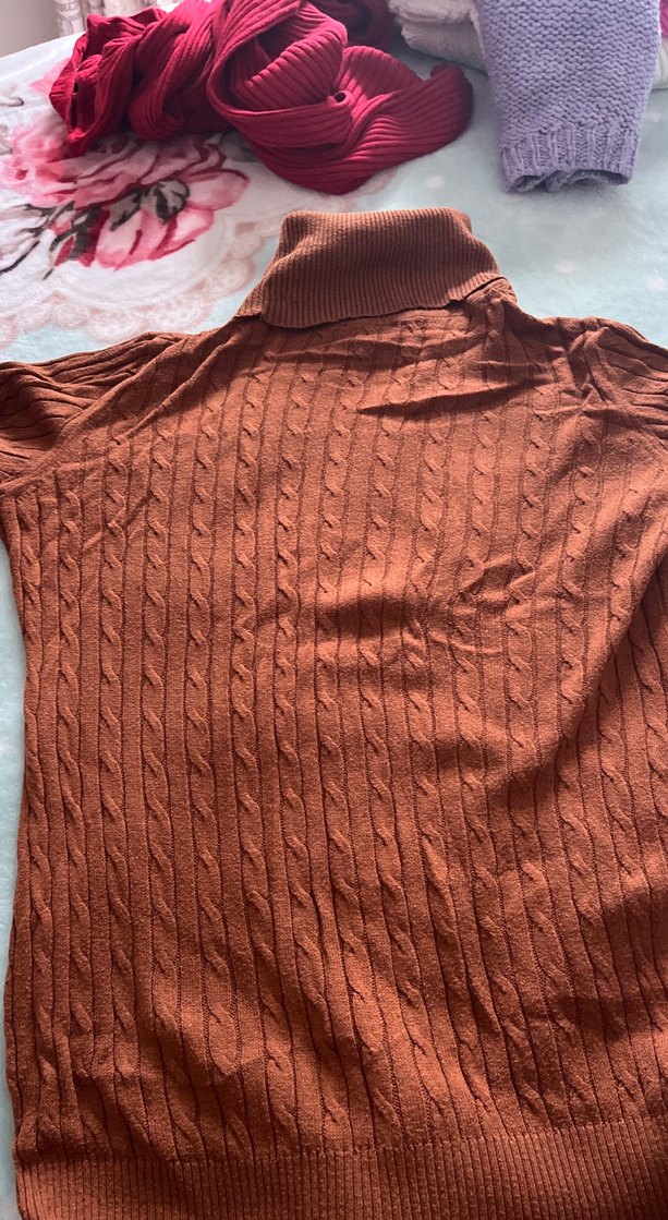 Kahverengi boğazlı kazak, uzun kollu ve örgü yapısıyla rahat bir kullanım sunar. Günlük kullanıma uygun, sade ve şık bir tasarıma sahiptir.
