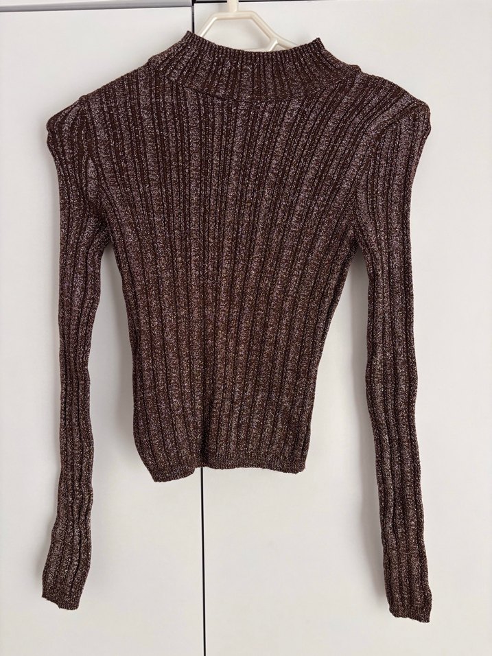 Kahverengi, boğazlı ve uzun kollu bu triko kazak, yumuşak örme kumaştan yapılmıştır. Rahat, desensiz ve günlük sokak stili için uygundur.