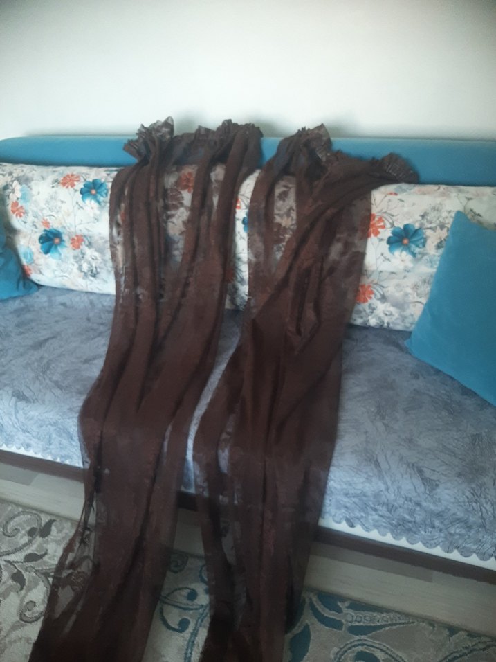 Kahverengi Bohem Bağlama Desenli Tül Perde