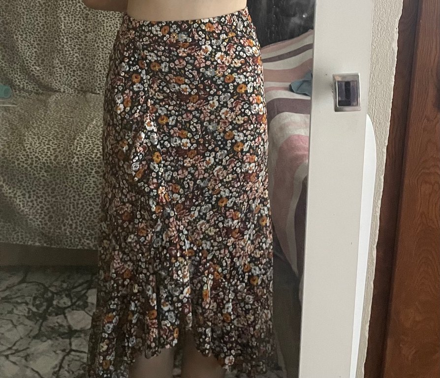 Kahverengi Bohem çiçekli etek
