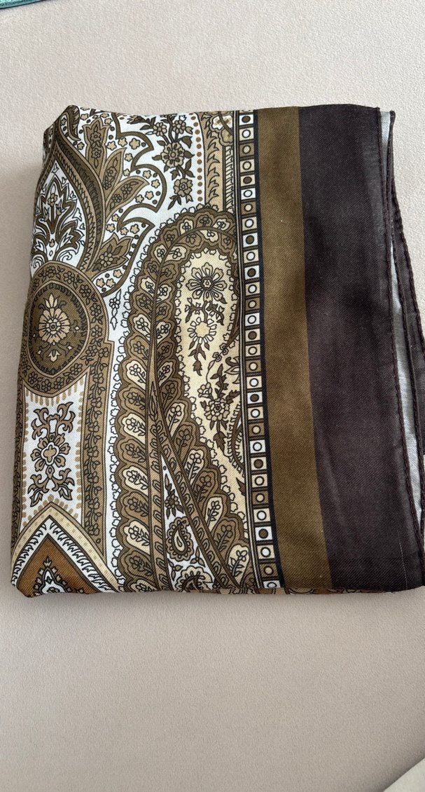 Sentetik kumaştan, kahverengi bohem desenli, drapeli kadın şalı, retro tarzı için uygundur.
