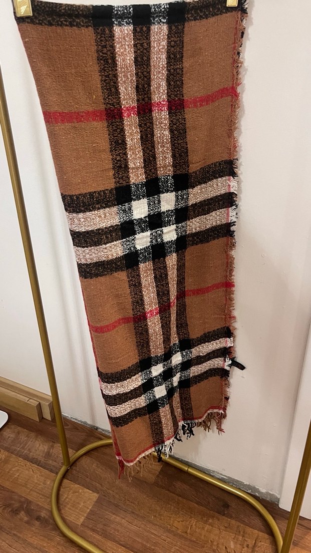 Koyu kahverengi, dokuma kumaştan yapılmış bohem tarzda, drapeli kadın şalı. Rahat ve şık bir aksesuar olarak öne çıkar.