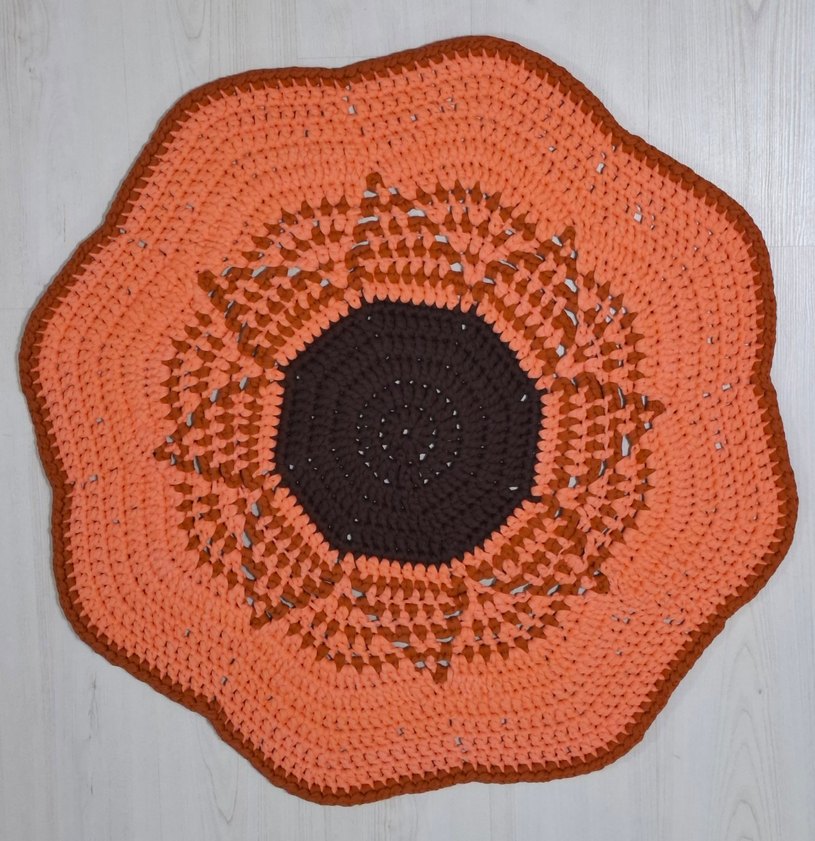 Kahverengi Somon Bohem Örgü Çiçek Paspas