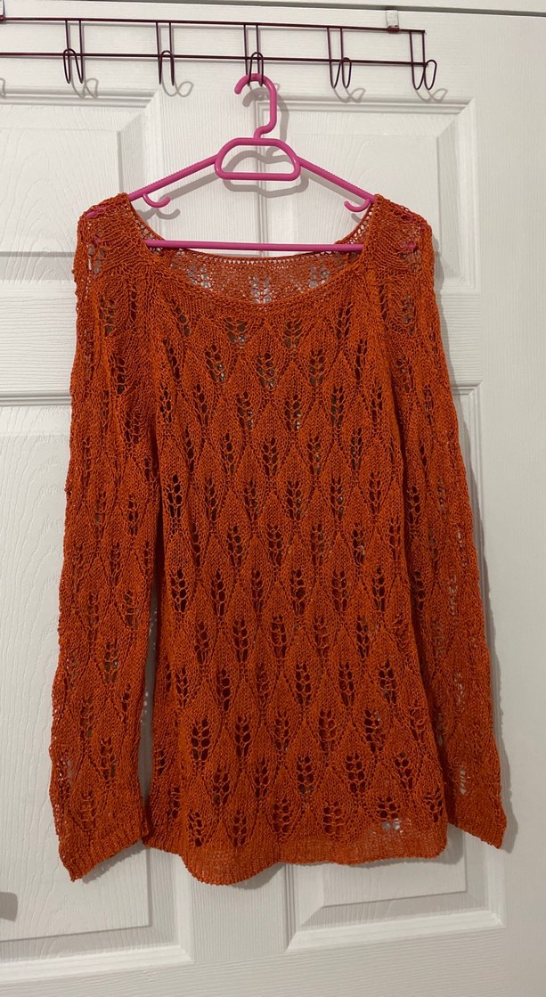 Kahverengi, uzun kollu, kayık yaka, midi boy, bol kesim örgü kadın kazak. Rahat ve günlük kullanım için uygundur.