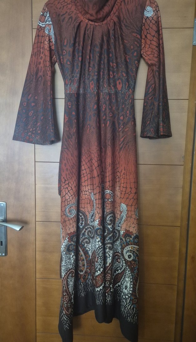 Kahverengi Bohem Uzun Kollu Uzun Elbise