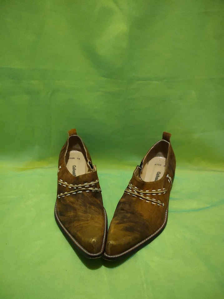 Vintage Cabaní marka gerçek süet deri cowgirl ayakkabı. Yumuşak doğal deri yüzeyi, elde dikiş detayları ve karakteristik batı tarzı burun formuyla dikkat çekici ve nadir bir modeldir. • Renk: Kahve tonlarında • Malzeme: Gerçek süet deri • Numara: 38 (burun formundan dolayı 37,5-38 için daha uygundur) • Topuk: Yaklaşık 5 cm ahşap görünümlü blok topuk • Kapanış: Yan detaylı • Durum: Vintage, temiz ve kullanıma hazır Tarz: Western, cowboy, rodeo, boho, festival kombinlerine çok yakışır. Koleksiyonluk, zor bulunan model. ✨ #vintage #vintagestyle #vintagegiyim #vintageshop #retrostyle #retroaura #y2kstyle #vintagelook #secondhand #ikincielfashion #uniqueitems #fashionfinds #dolapkeşfet #dolapsatış #dolapstil #thrifted #thriftfinds #thriftstore #styleinspo #ootdturkiye #modaönerisi #trendalert #kombinönerisi #retro #y2k #ayakkabı #cowgirl #bohem