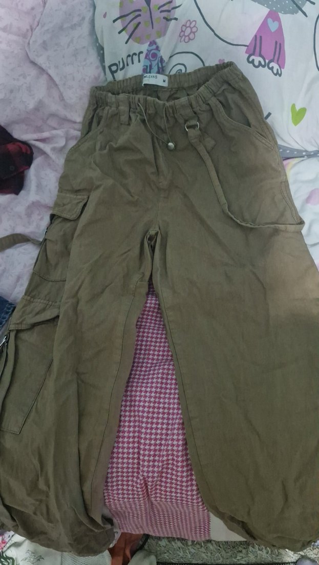 Kahverengi, bol kesim kumaş pantolon cep detaylii az kullanildi