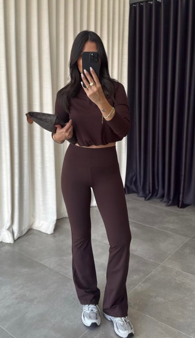 Kahverengi Bol Paçalı tayt takım alt üst takım ikili takım