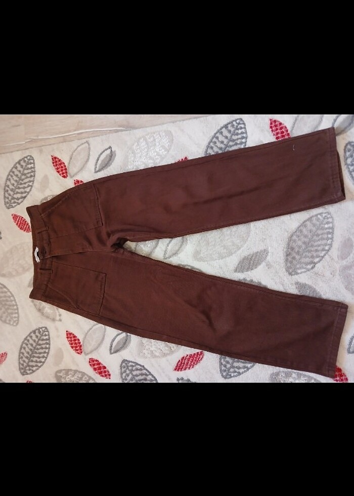 Kahverengi bol paça pantolon,hiçbir deformesi yoktur. Bütün ölçüler fotoğraflarda belirtilmiştir.