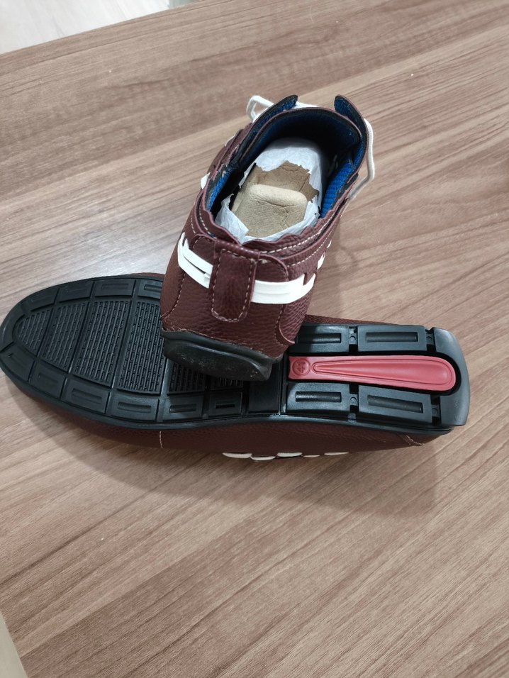 Kahverengi erkek klasik ayakkabı kauçuk tabanlı, hiç giyilmemiş sıfır ayarındadır.