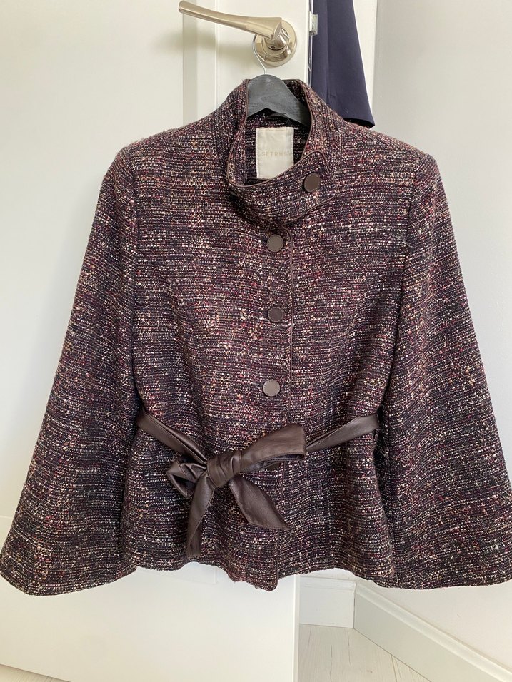 Kahverengi bordo tonlarında Kemerli Kadın ceket setrms