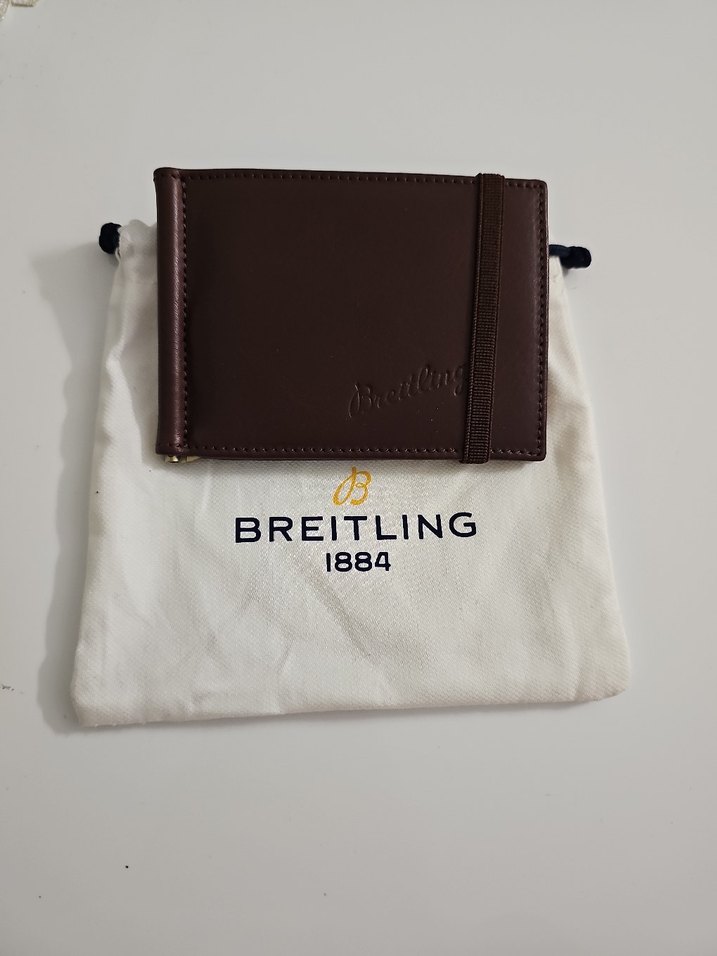 Kahverengi Breitling erkek cüzdanı, baskılı logo ve elastik bantlı şık tasarıma sahiptir. Markalı kese ile birlikte gelir. (orjinal ürün)