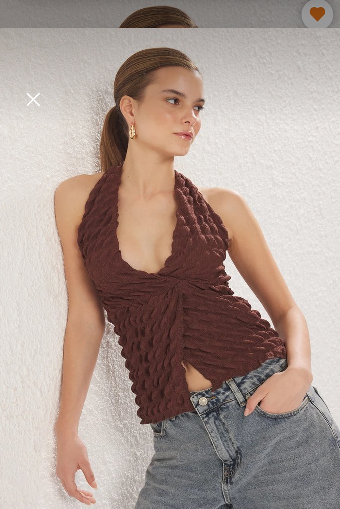 Kahverengi, premium dokulu, bağlamalı ve yumuşak örme kumaştan yapılmış bu fitted midi büstiyer, rahat ve parti kombinlerine uygundur. ✨
