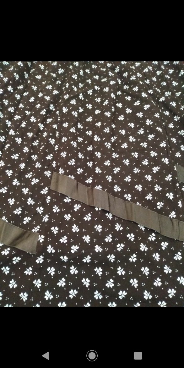 Uzun kahverengi. anne. eteği, bol kesim ve detaylarına sahiptir. çiçek deseni vintage ve bohem tarzına uygundur.