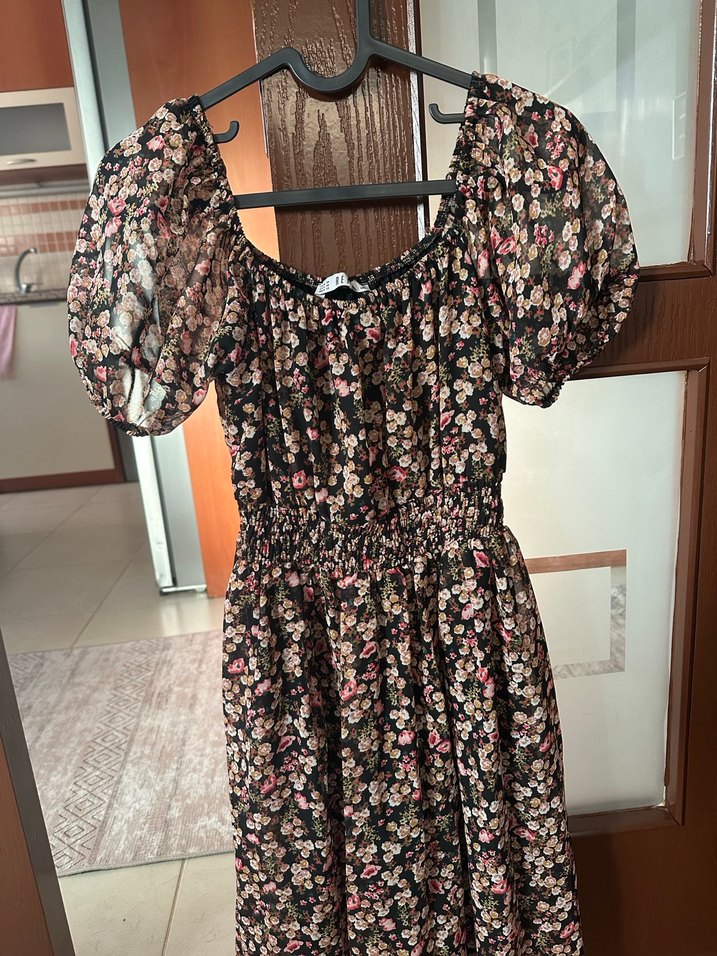 Kahverengi, çiçek desenli bohem elbise, bol kesim, fırfırlı detaylı ve askılı kolludur. Hiç bir sorunu yoktur içinde astarı mevcuttur.