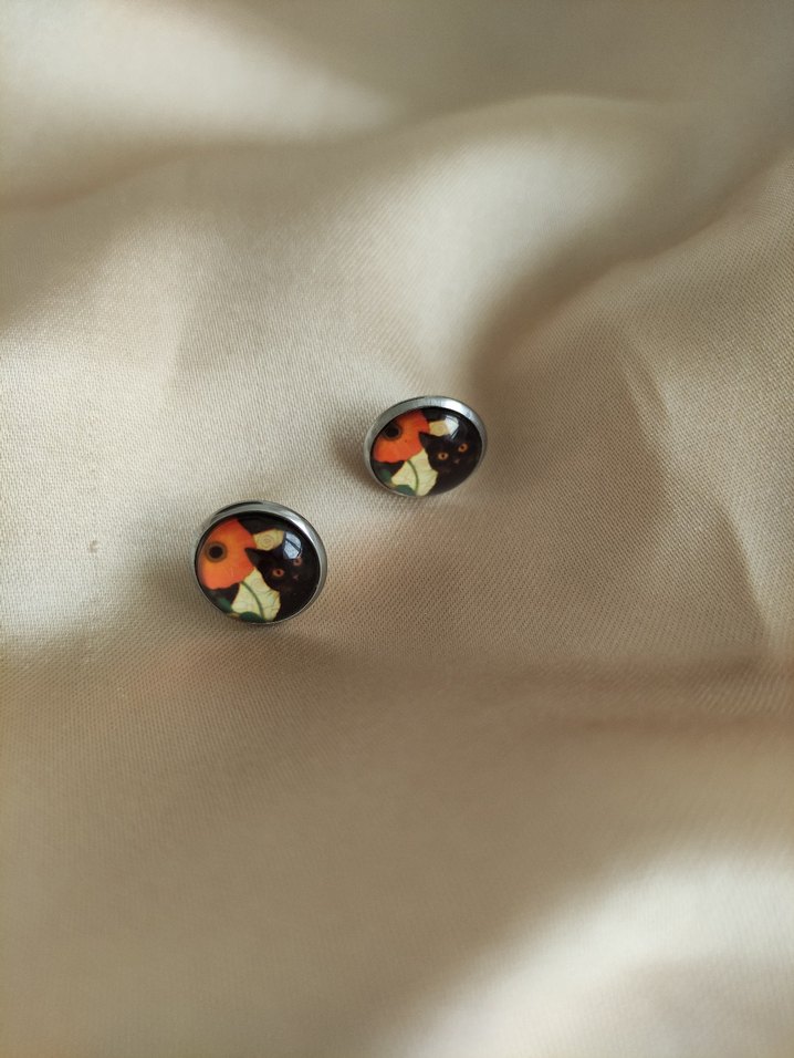 Düğme tarzı kahverengi çiçek desenli küpeler, minimalist ve goth tarzını bohem dokunuşla birleştirir, romantik akşamlar için uygundur.