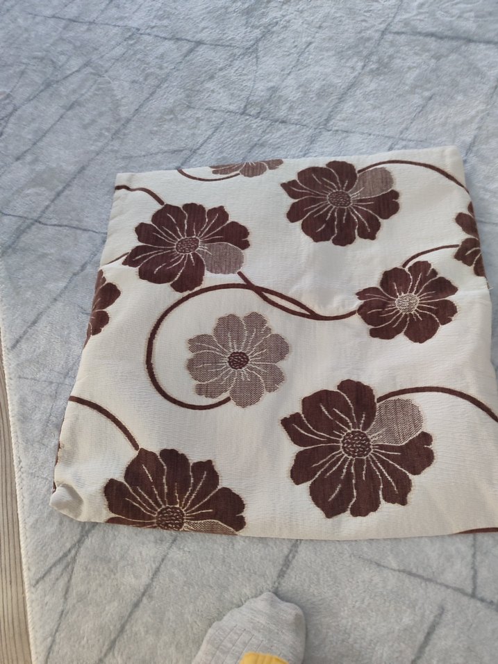 Kahverengi çiçek desenli, yumuşak kumaştan yapılmış klasik tarzda kırlent kılıfı. Mekanınıza sıcaklık katar. çok gözde bir parça dört adet köşe yastık alıcılara hayırlı olsun not. ikinci el sınıfına giriyor.