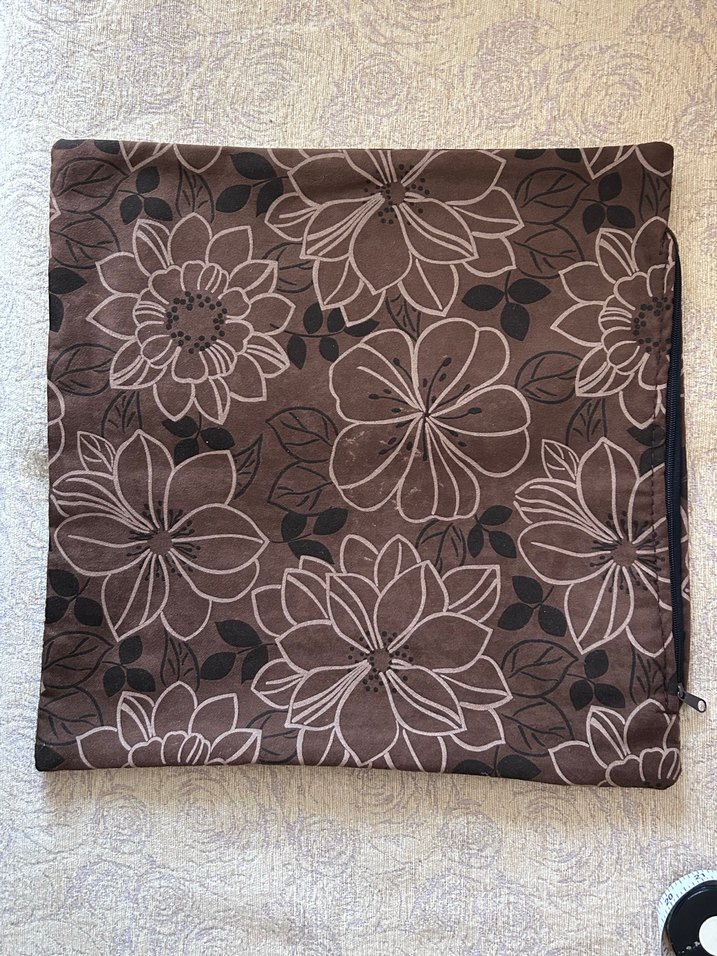 Kahverengi Çiçek Desenli Modern kırlent Kılıfı