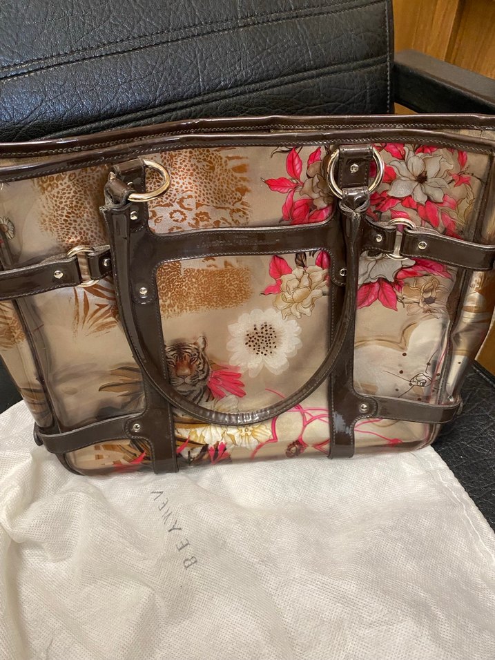 Kahverengi Çiçek Desenli Tokalı Kadın Çantası
