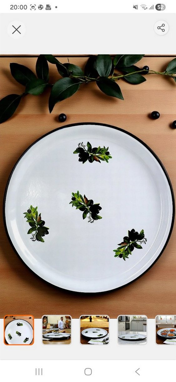 Klasik tarzda, beyaz zemin üzerinde koyu kahverengi çiçek desenli ve siyah kenarlıklı tabak.