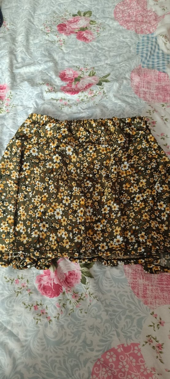 Kahverengi Çiçekli Volanlı Mini şortlu etek