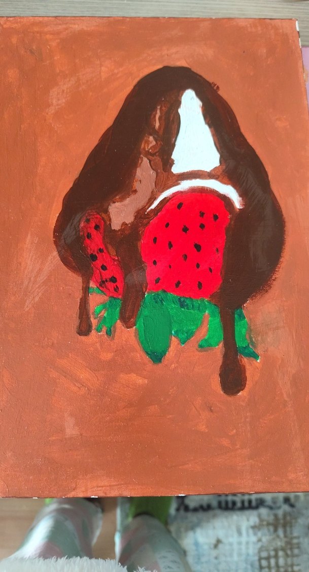 Kahverengi, çikolata kaplı çilek desenli koyu baskılı fırın eldiveni.