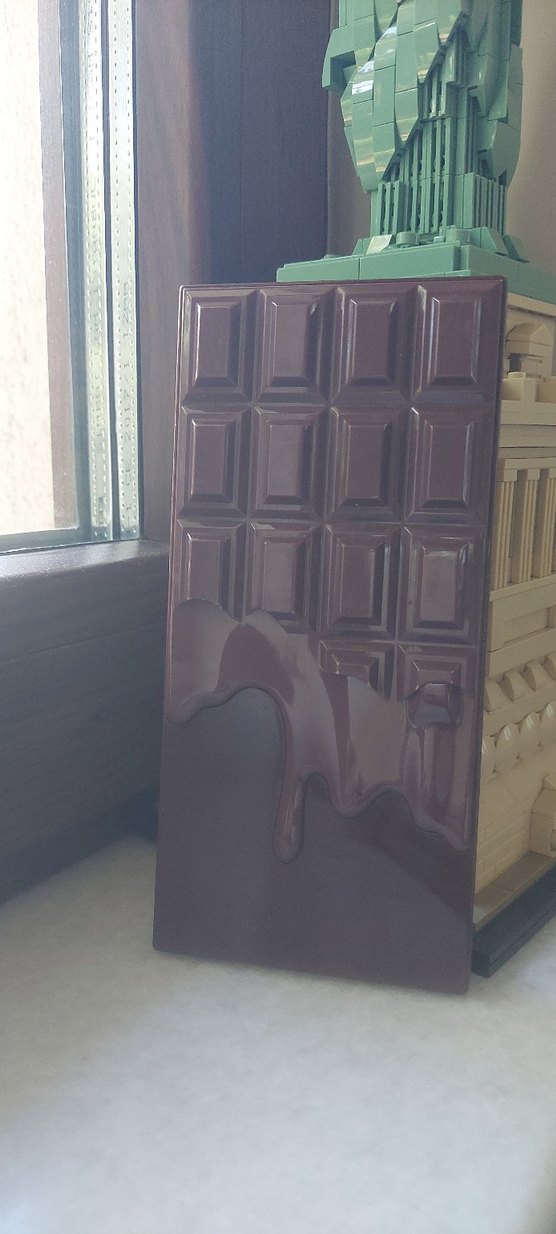 Kahverengi, çikolata şeklinde tasarlanmış göz farı paleti, parlak ve eriyen efektli yüzeye sahiptir.