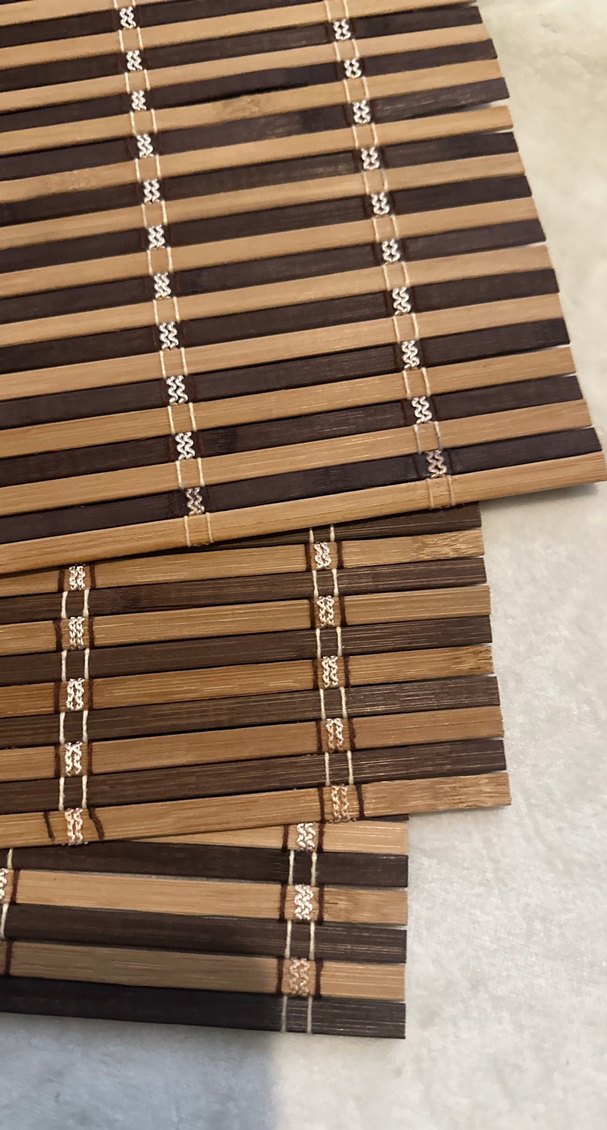 Koyu kahverengi çizgili bambu amerikan servisler, doğal dokulu ve klasik tasarıma sahiptir. ️ 3 tane sinin fiyatı 200 tl