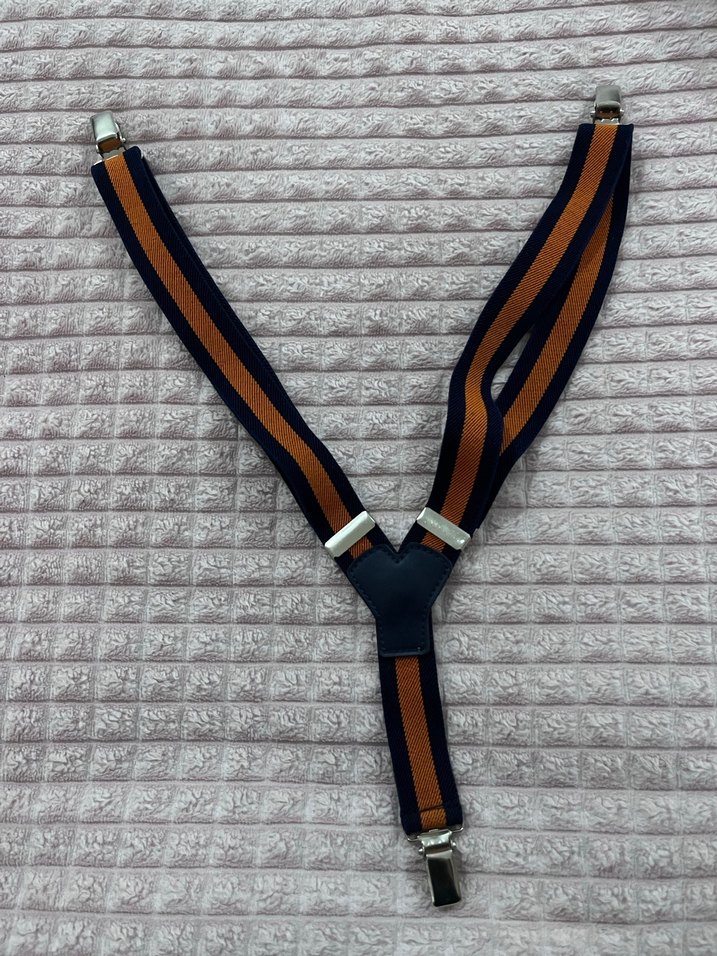 Deri malzemeden yapılmış, kahverengi çizgili ve tokalı çocuk askısı, sokak stili için uygundur.