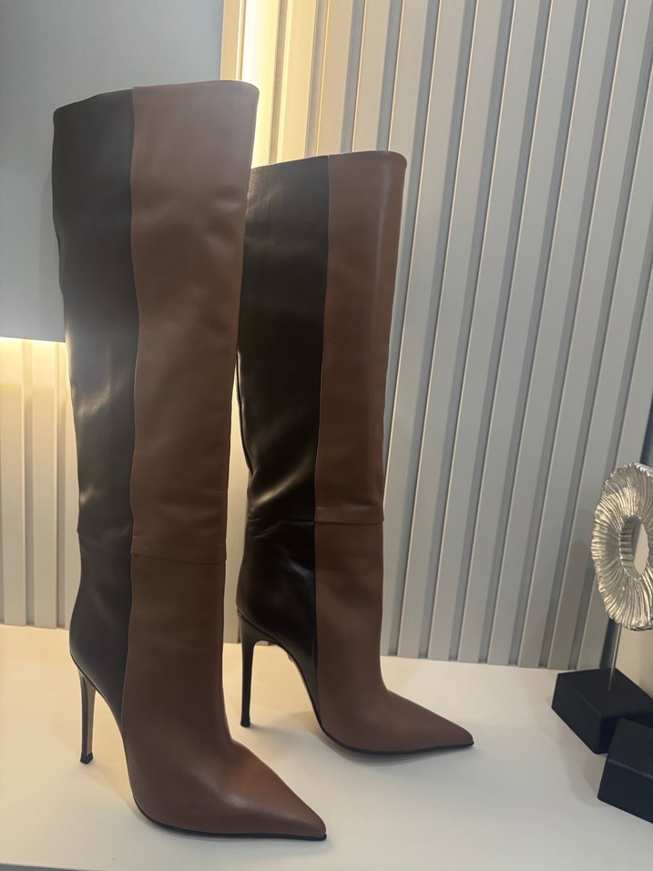Dizüstü kahverengi deri çizmeler, stiletto topuk ve kemerli çizgili tasarıma sahiptir, ofis için uygundur. Nine west orjinal hakiki deri geri iade yoktur 39 uygun