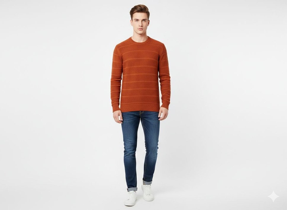 Kahverengi Çizgili Erkek Triko Kazak