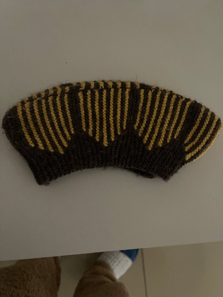 Koyu kahverengi örgü ğayik rahat çizgili deseni ile avant-garde tarzı ve sıcaklığı bir arada sunar. Moda tutkunları için ideal.