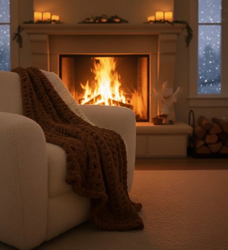 Koyu kahverengi, yumuşak ve sıcak kumaştan yapılmış çocuk battaniyesi. Düz ve rahat kullanıma uygundur.