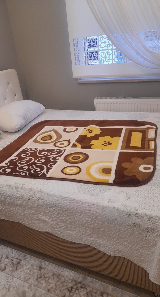 Koyu kahverengi, soyut desenli çocuk battaniyesi, yumuşak ve sıcak kumaştan üretilmiştir. Çocuk yatağına konfor ve şıklık katar. ️