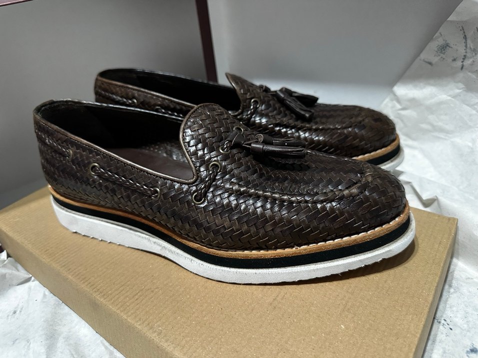 Koyu kahverengi deri erkek klasik Örgülü ayakkabı, ve püskül detayına sahip, geleneksel tarzı günlük kullanım rahatlığıyla birleştirir. 40 Numara