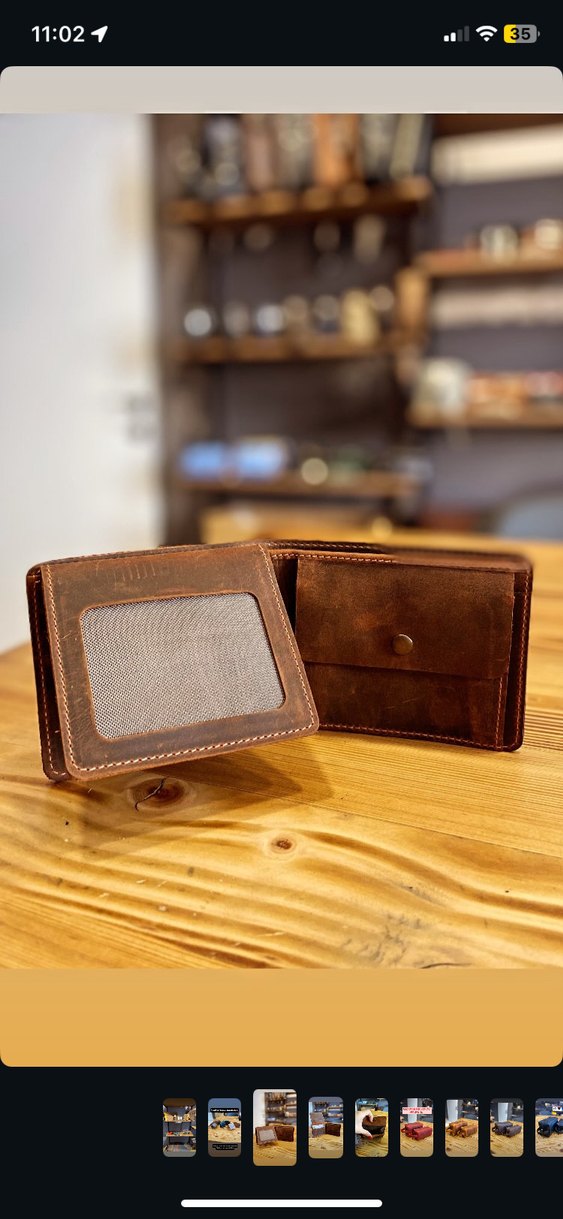 Parlak kahverengi vintage erkek cüzdanı, şeffaf kimlik penceresi ve çıtçıtlı bozuk para cebi ile klasik, desensiz tasarıma sahiptir.