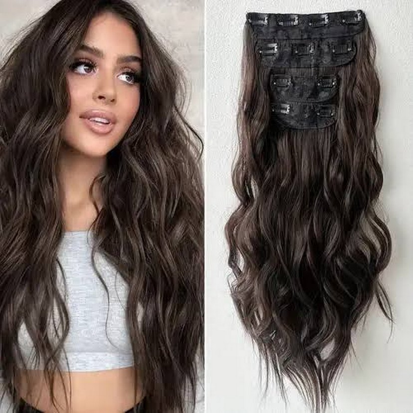 Kahverengi Dalgalı Sentetik Saç Çıtçıt