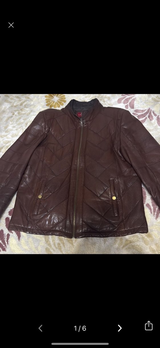 Koyu kahverengi deri biker ceket, fermuarlı ön ve uzun kolludur. Normal midi boyda, regular fit kesime sahiptir ve günlük kullanıma uygundur.