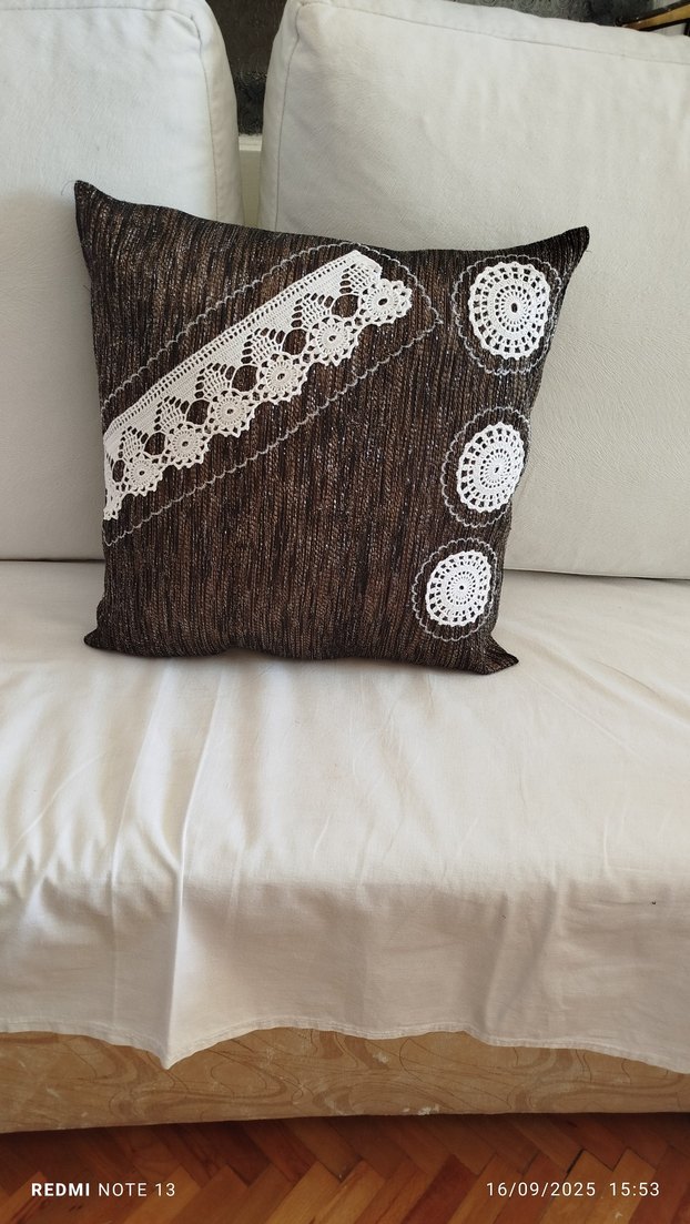 Koyu kahverengi, klasik tarzda beyaz dantel detaylı yastık kılıfı. Dekorunuza geleneksel bir dokunuş katar. ️ihtiyaç fazlası ve taşınma nedeni ile satışa sunuldu üründe herhangi bir deformasyon mevcut değildir ürün içi astarlıdır dolu ölçüleri 37x37 cm