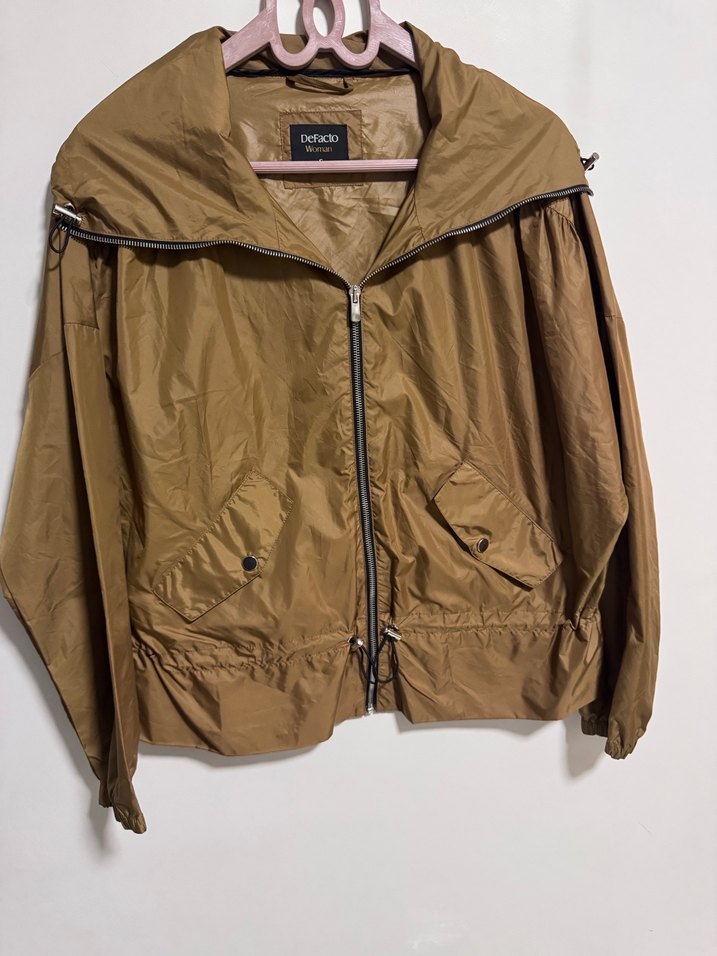 İncecik defacto yagmurluk hiç giyilmedi s beden ama 38 40 bedende rahatlıkla oluyor tam mevsimlik