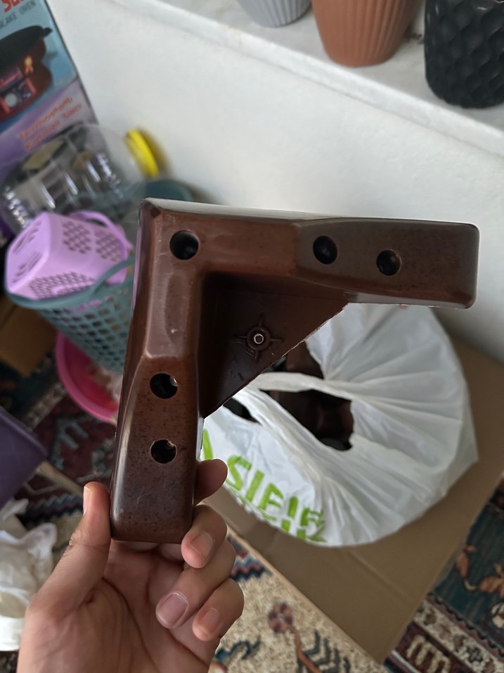 Çoklu vida delikli, ev dekorasyonuna uygun koyu kahverengi köşe parçası. Üzerinde 'SIEH' yazısı bulunur. 16+16 toplam 32 adet vardır