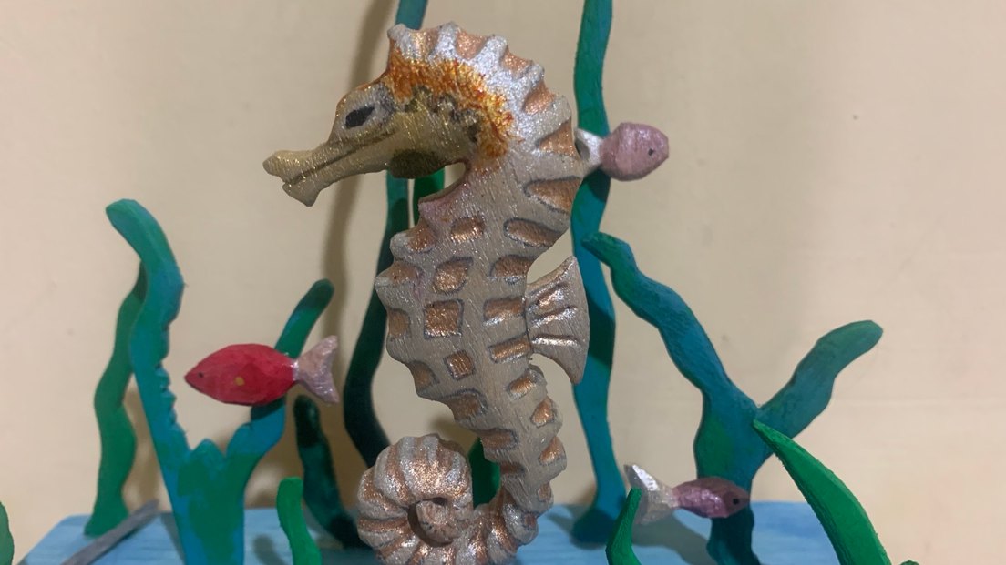 Detaylı dokulara ve hafif renk tonlarına sahip kahverengi denizatı figürü, deniz temasını yansıtıyor.kişiye özel yapıldı, eşi yok
