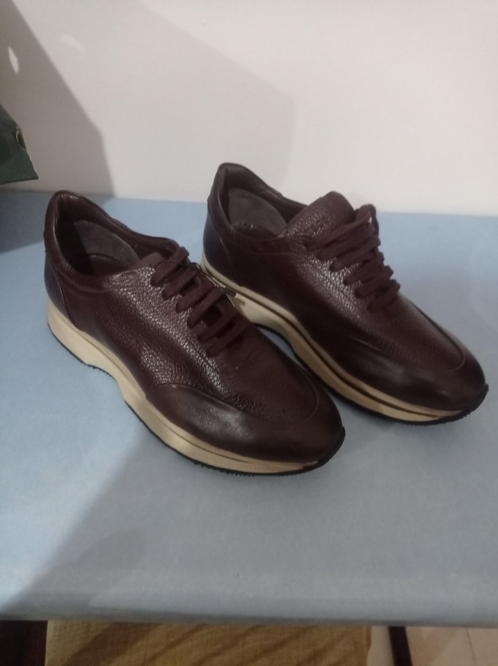 Yumuşak deri kahverengi bağcıklı erkek spor ayakkabısı, rahat tabanlı, sokak stili için uygun.