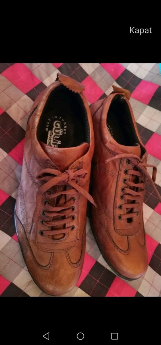 Kahverengi Deri Bağcıklı Erkek Spor Ayakkabı. Gerçek deri