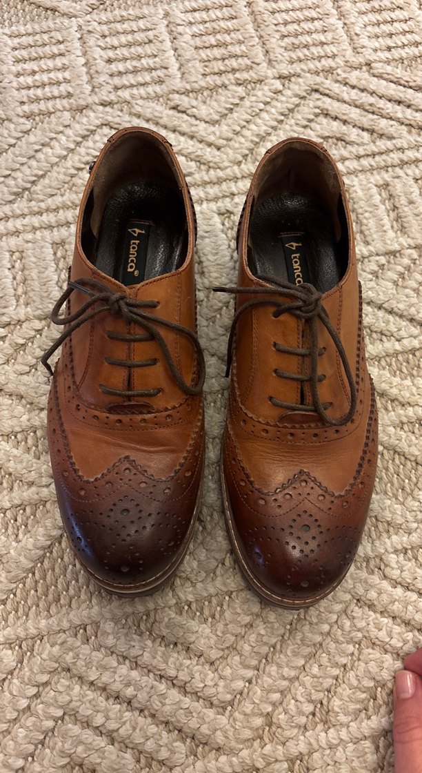 Sadece 2 kere giyilmiş deri kahverengi bağcıklı bayan ayakkabısı