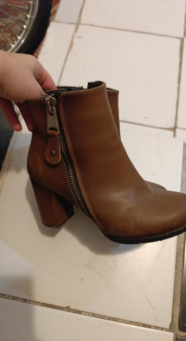 Kahverengi Deri Biker Bot, Tokalı, Kalın Topuklu