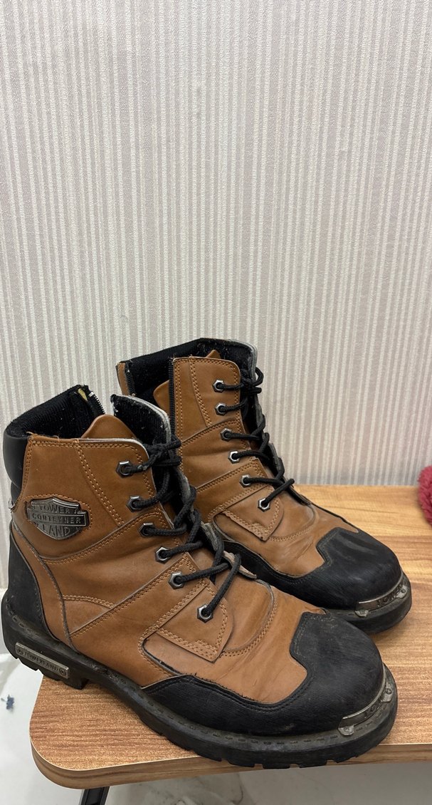 Kahverengi deri biker botlar, tokalı detaylı ve dolgu topuklu, günlük rahat sokak stili için uygundur.